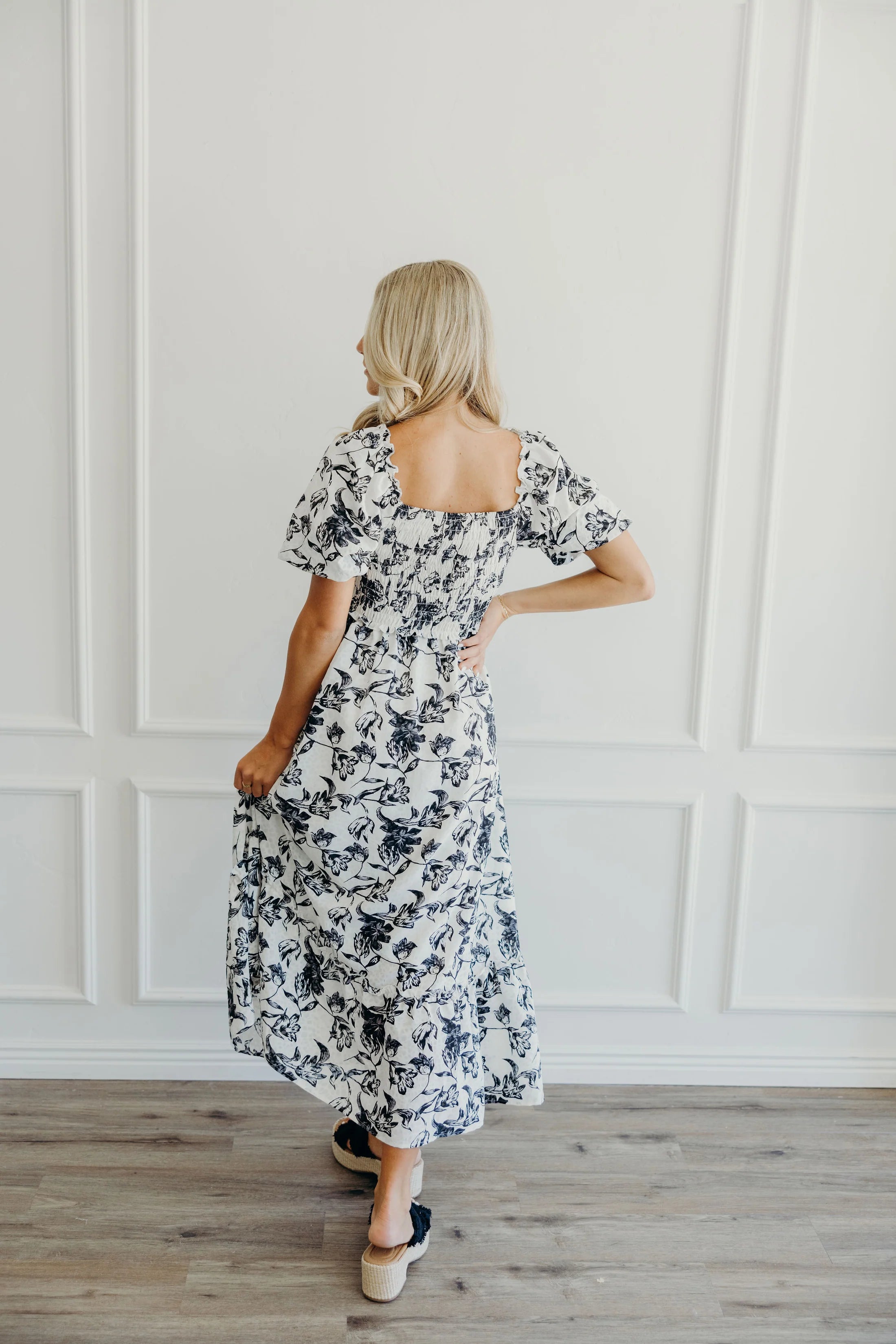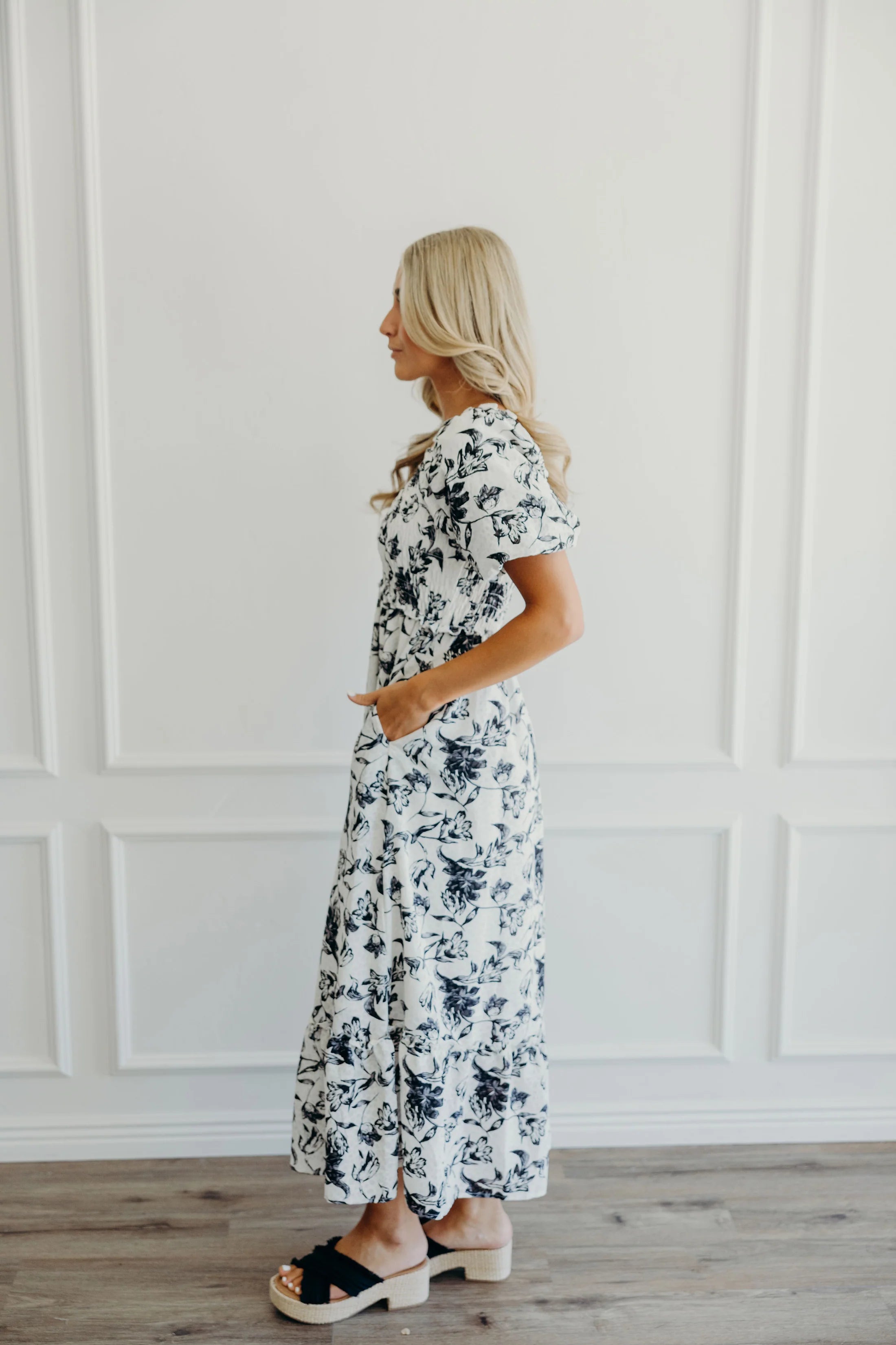Introducing the Allis Monochrome Petals Dress - the epitome of sophistication and style. This stunning dress is perfect for any occasion, from church to a night out. With its lined and pocketed design, balloon sleeves, and striking monochromatic petal pattern, it is sure to turn heads and make a statement. Elevate your wardrobe with this versatile and elegant midi/maxi dress.